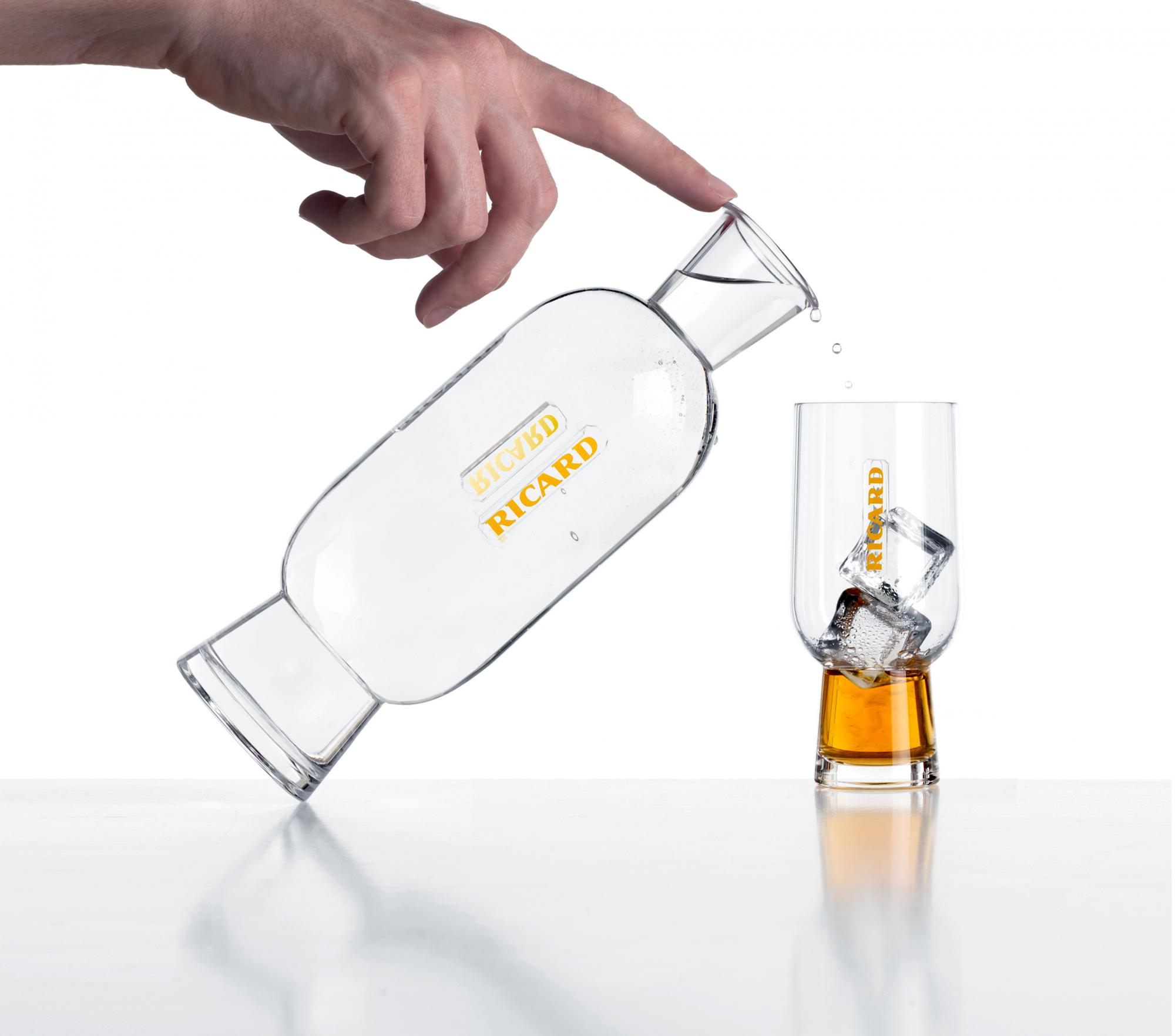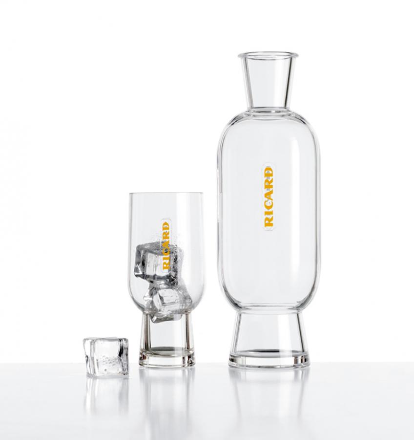 Ricard entrusted Mathieu Lehanneur with the role of redesigning its carafe and glass set to equip bars, restaurants and clubs. The tasting ritual, a real institution, has been perfected by a complete revision of the codes and features by the French designer. the stem of the glass contains the correct measure of Ricard, an end therefore to incorrect measures. Then, the flared shape of the stem does not allow ice-cubes from entering, a small detail that prevents direct contact between the ice and the Ricard and therefore the formation of solidified anise essential oil flakes, that spoil the taste buds of purists! A design feature that satisfies lovers and also guides enthusiasts who have the tendency to put the ice-cubes in the glass first of all, making a precise measure impossible "With the Ricard teams we looked at reintroducing the preparation ritual to the very core of the tasting. I wanted to use the alchemy of the perfect measure but make it intuitive, obvious. The glass is primarily responsible for all that. As a result, whatever the order between ice-cubes and Ricard, you can be sure of having the right balance... "