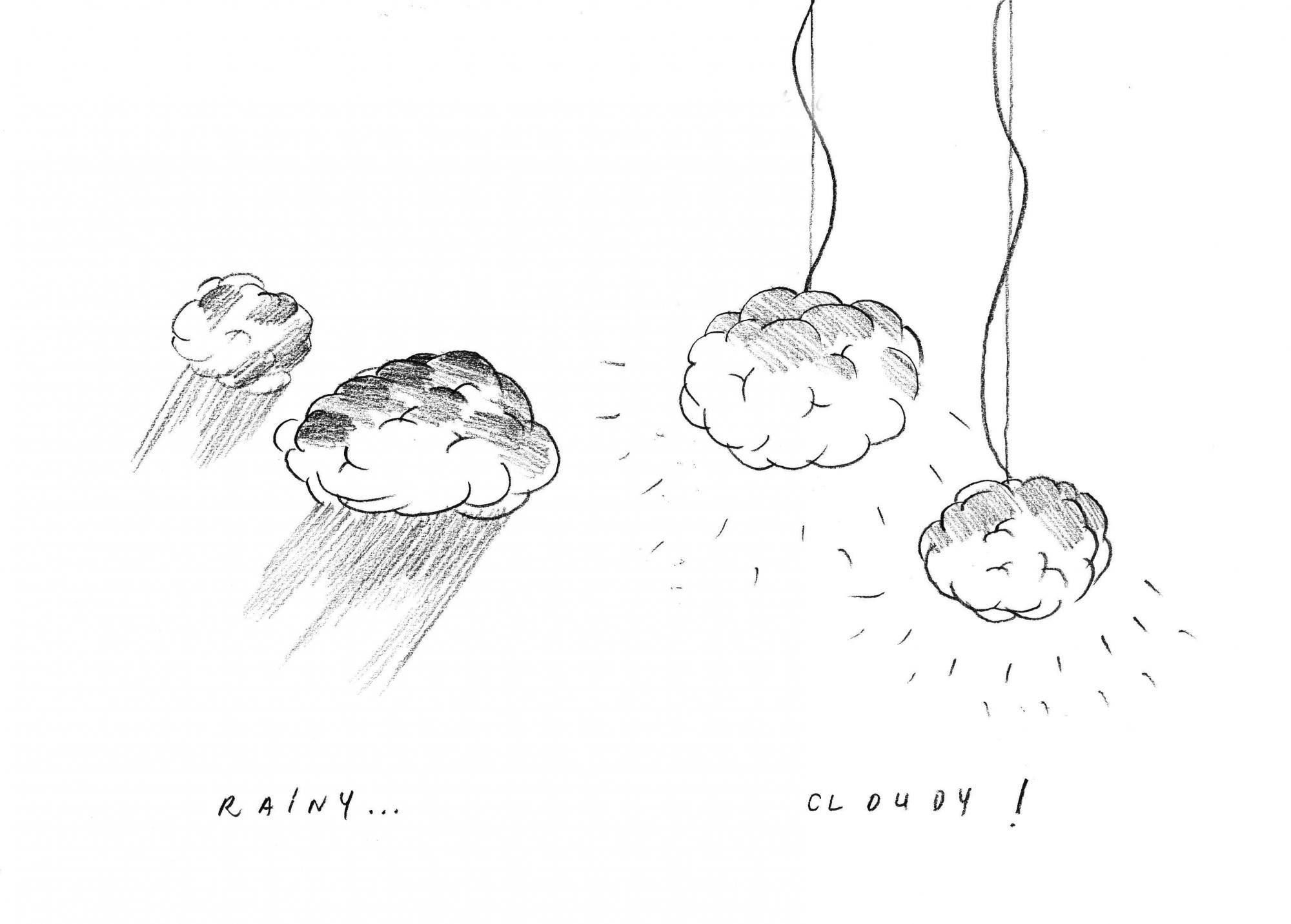"By mixing together clear white glass with high-luminosity LEDs - explains Mathieu - Cloudy is a ray of sun after the rain!"