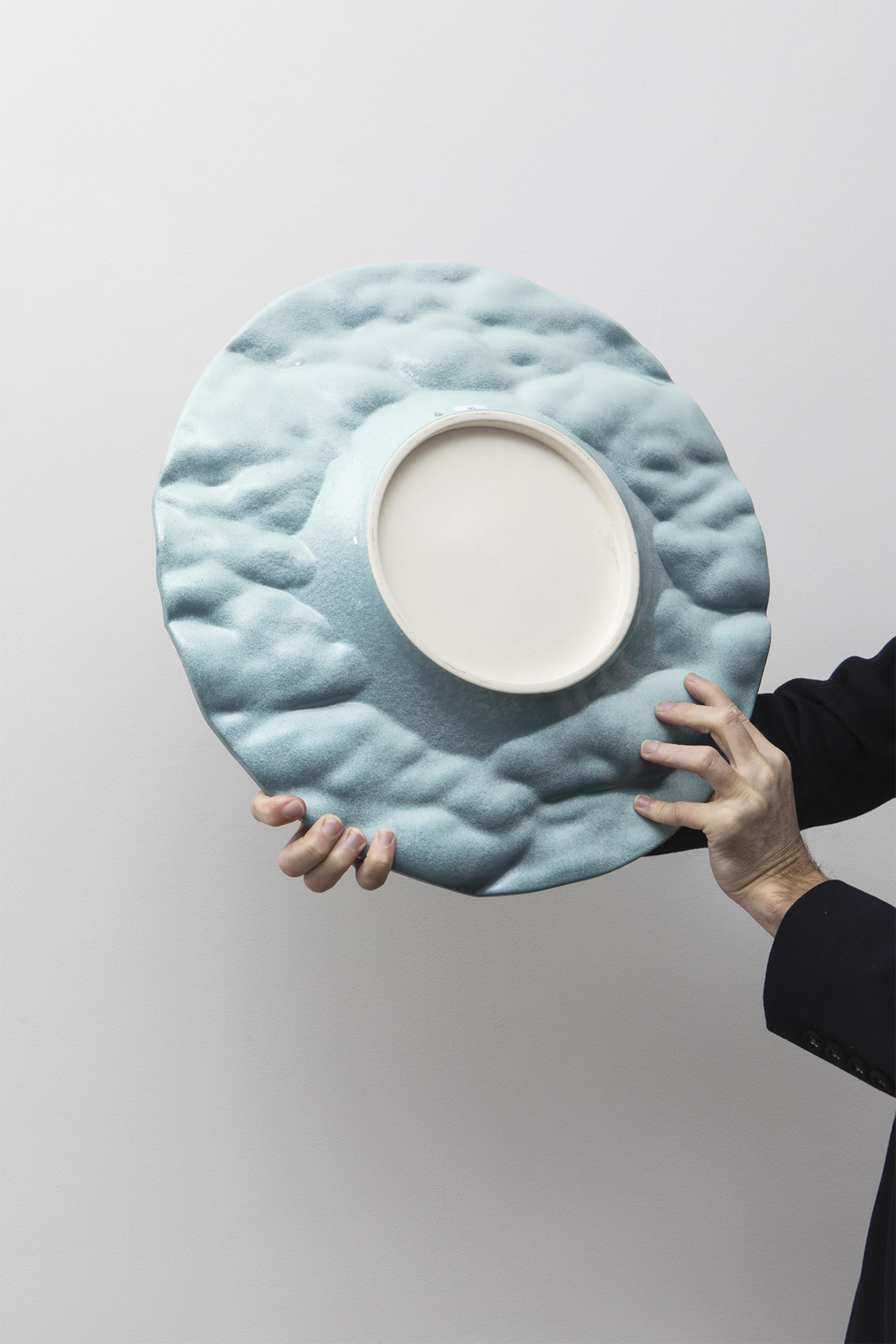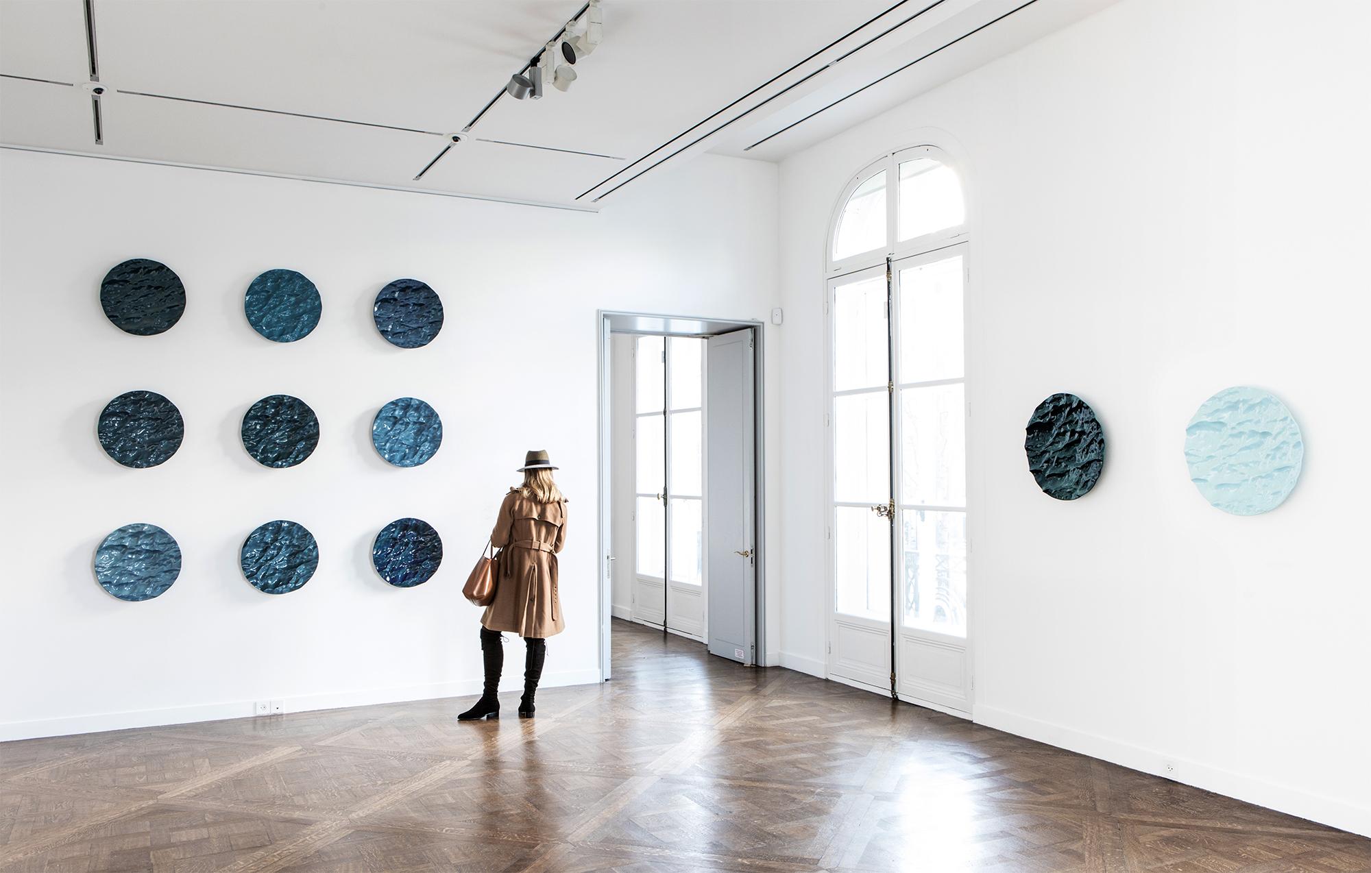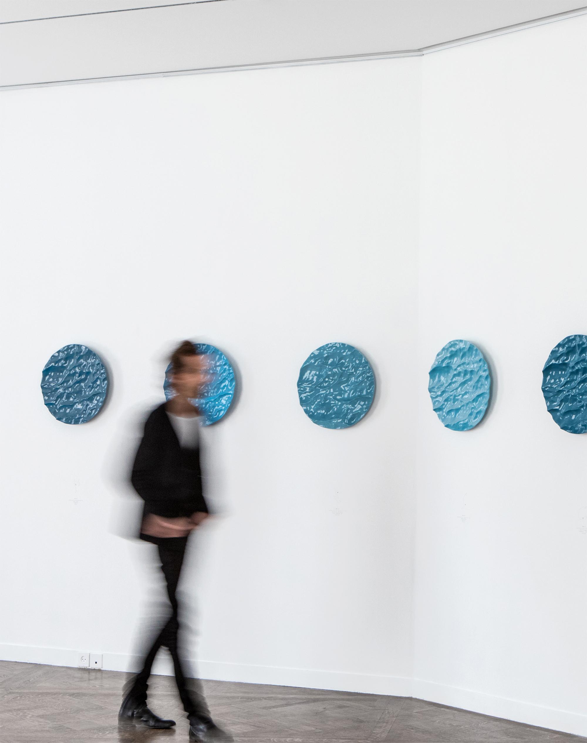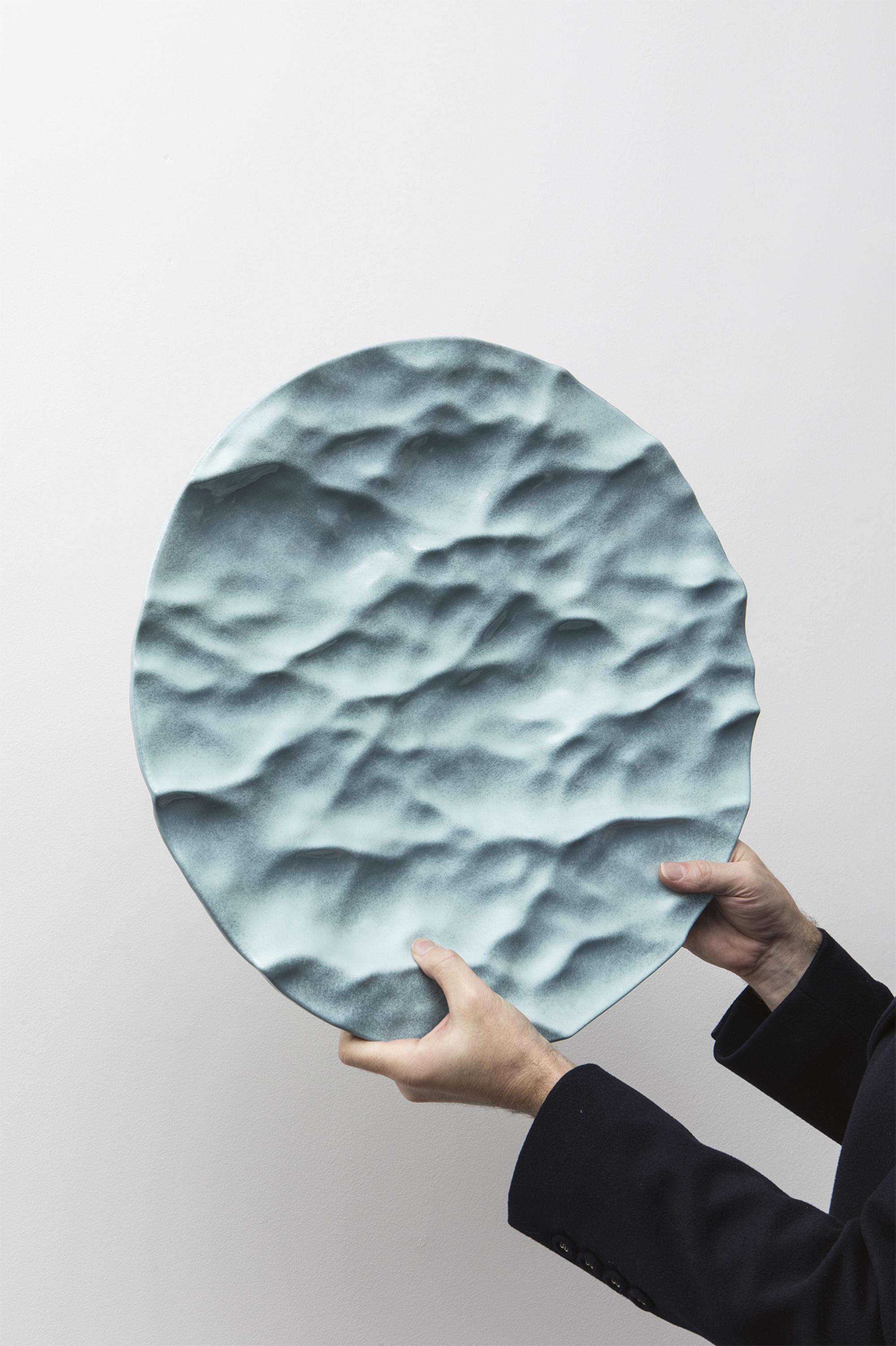 Using high-definition satellite photography, fifty points across the earth have been selected to materialize them through within large « faience » pieces. As though formalizing an aquatic relief, the exact colors are enameled to reproduce the delicate nuances. Each shade is unique and suggests the geographical specificity of its environment.