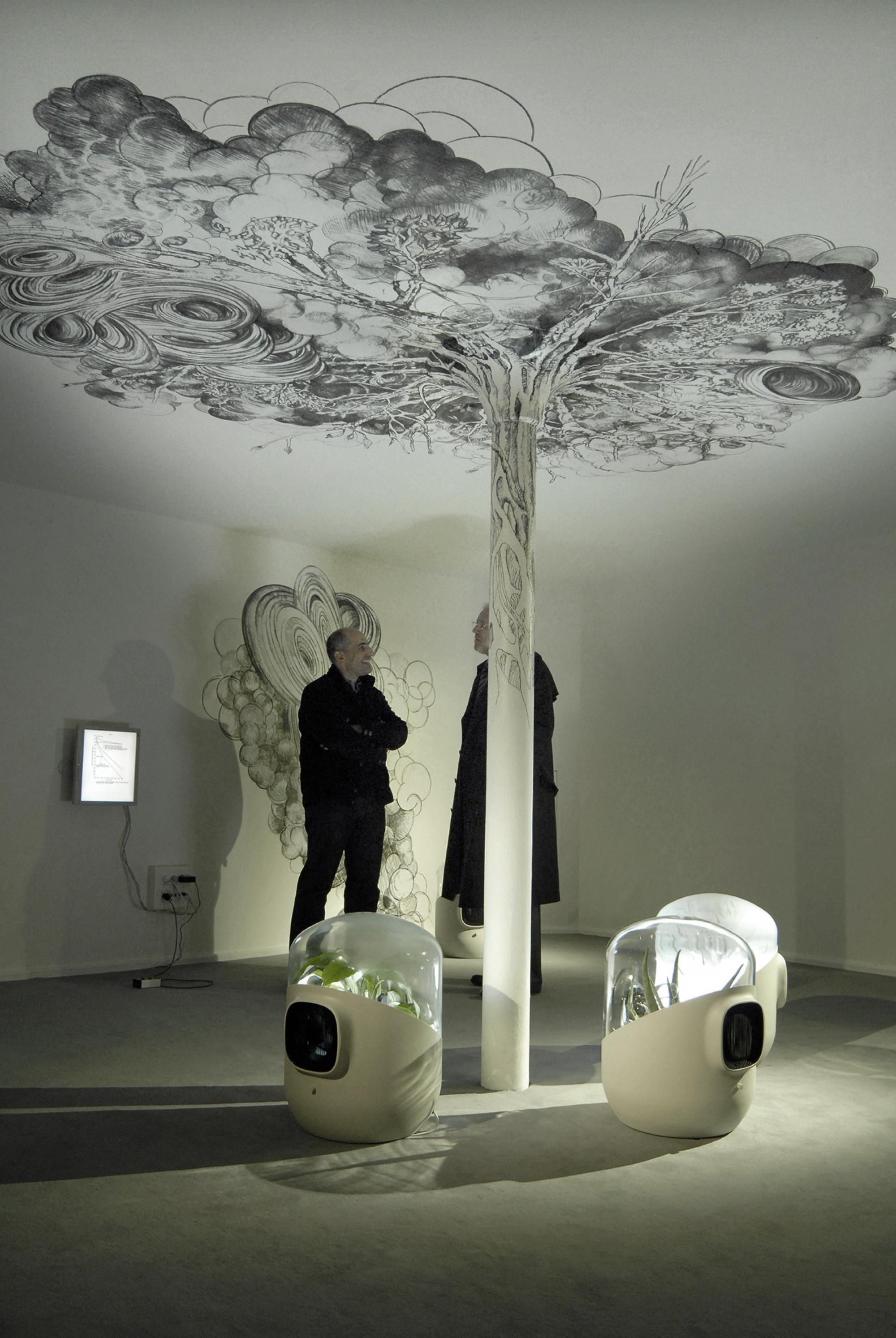 ANDREA is a living air filter which absorbs undesirable effects of contaminated air by the profusion of manufactured goods. It takes in the air from the room and absorbs its' toxic compounds.