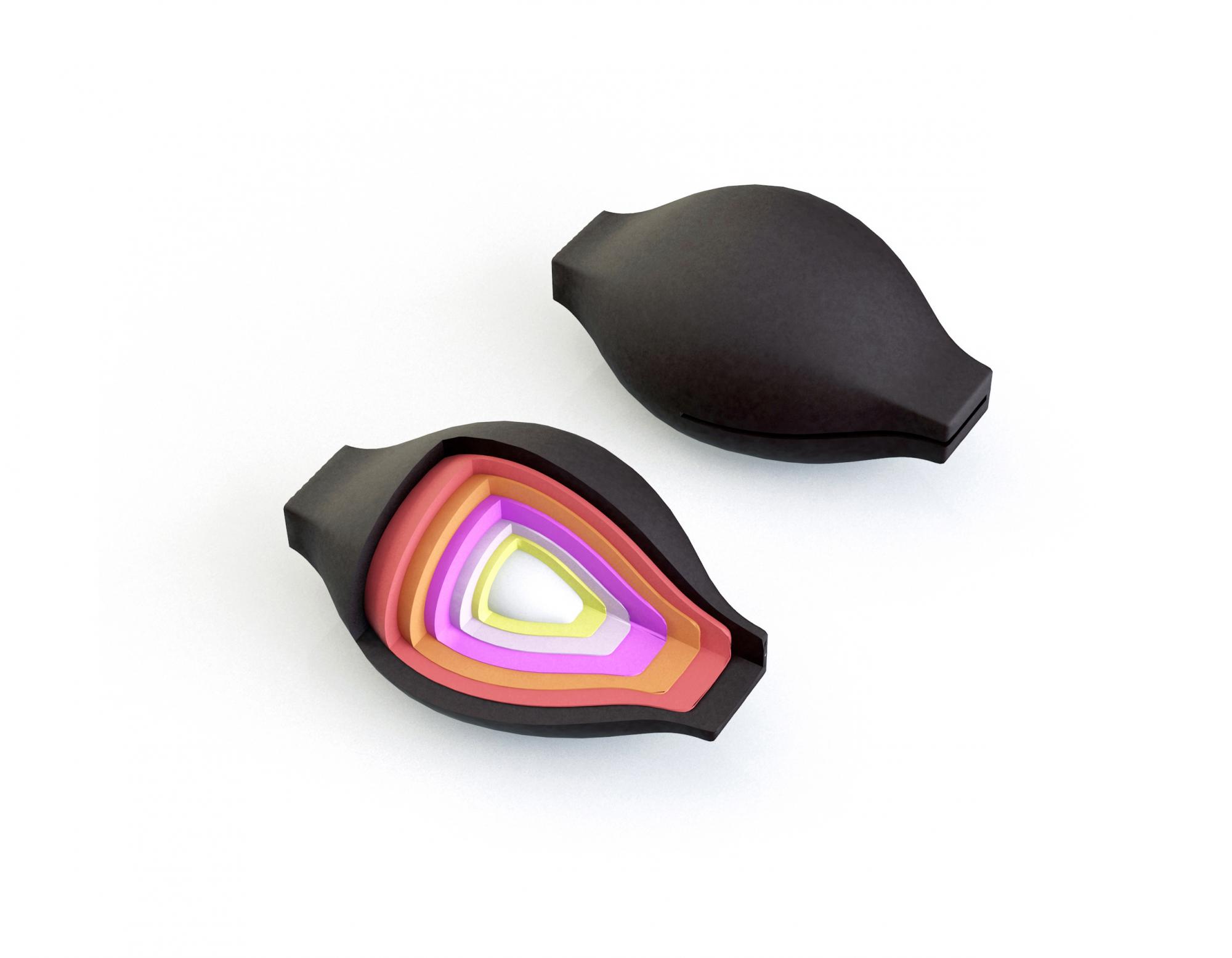 The principle of Antibiotic in Layers is to remove leaves off the product in the same way as one would peel an onion. The patient consumes one layer per day, starting with the darkest layer and progressing to the lightest until he arrives at the centre where the final "recovery" capsule is found.