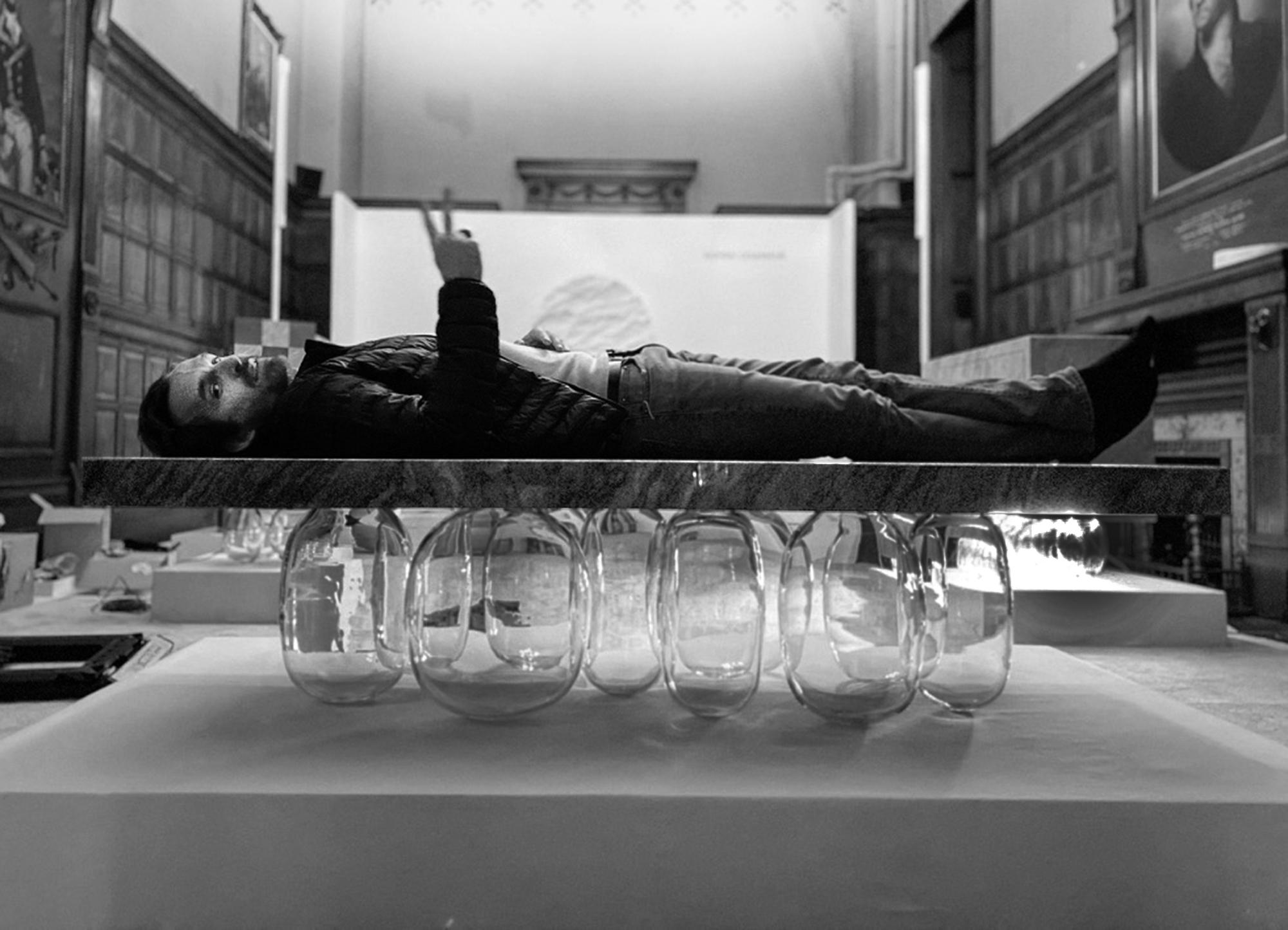" Not unlike the conquest of space, the poetry of the quest is only possible because it is supported by technological borsefalso expertise. Here, each bubble of glass is able to support more than 250 kg. Their apparent delicacy is only an illusion. " ML