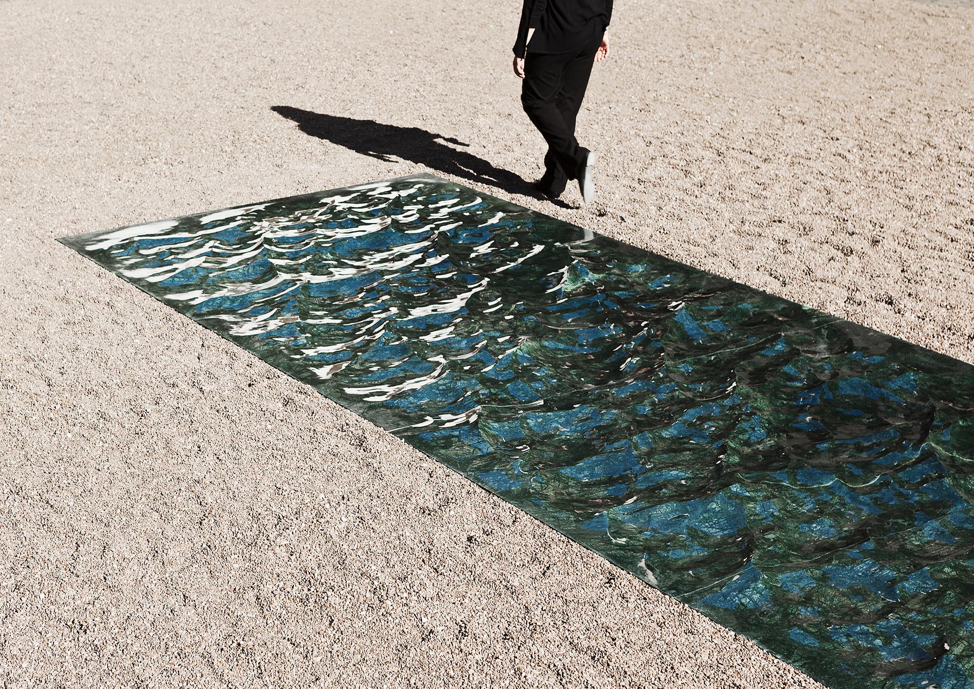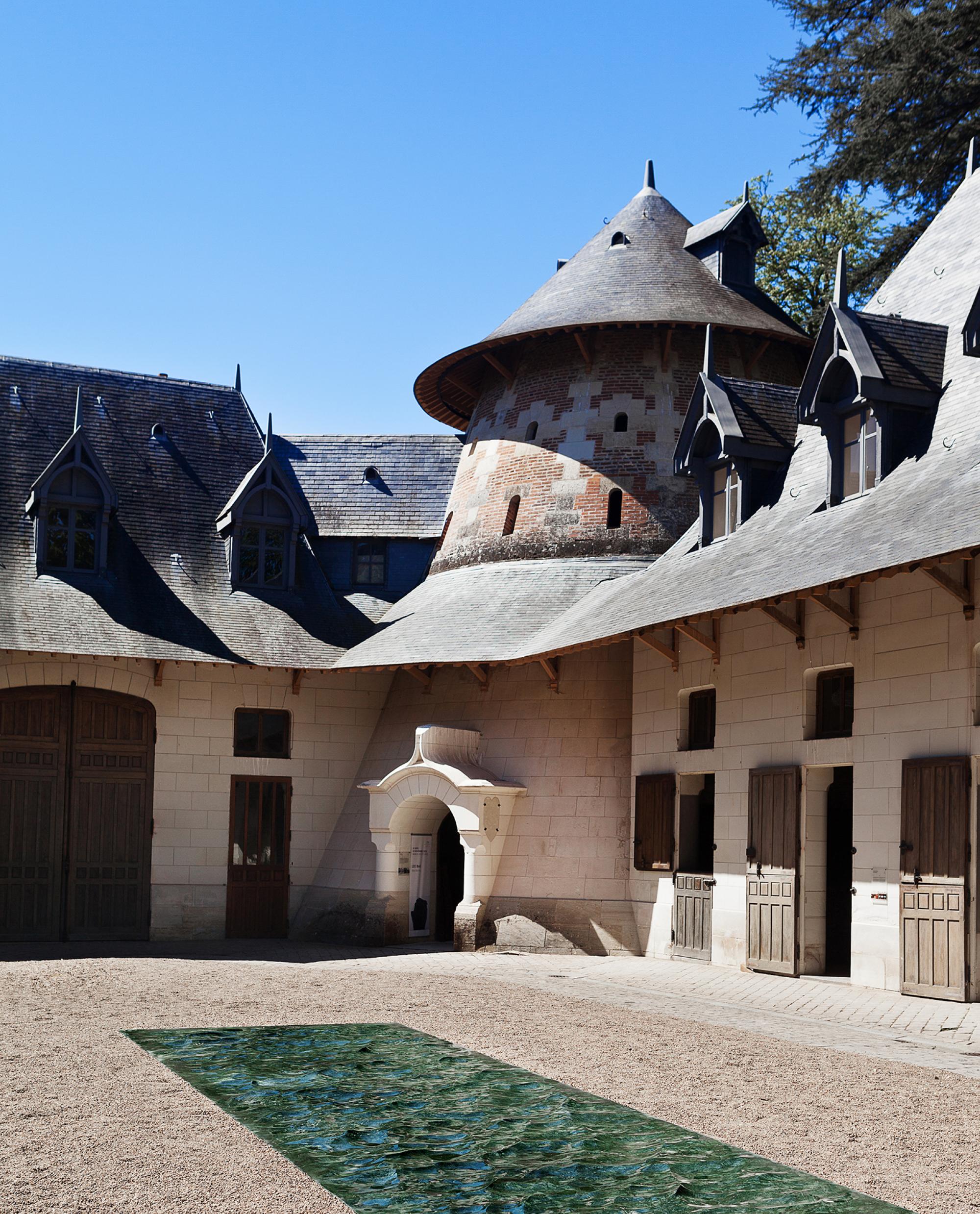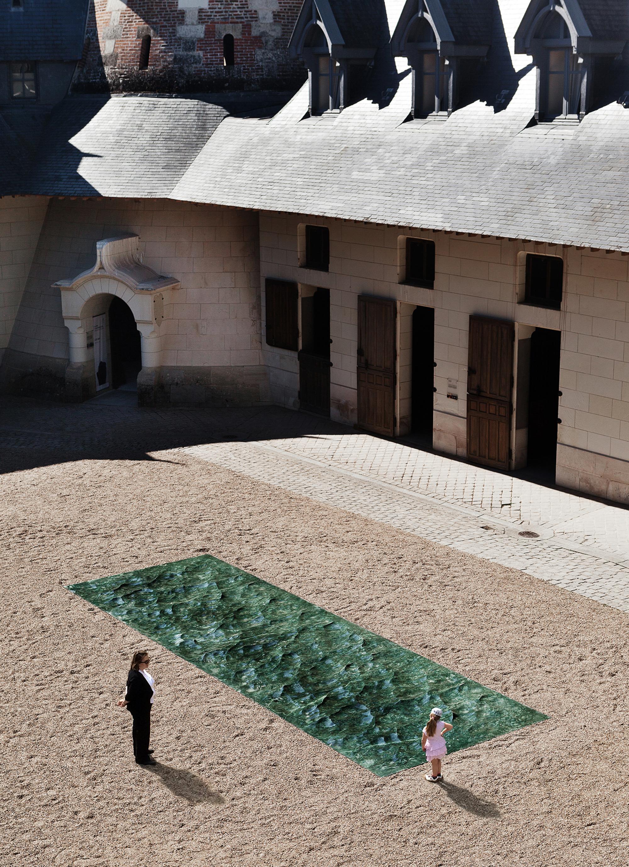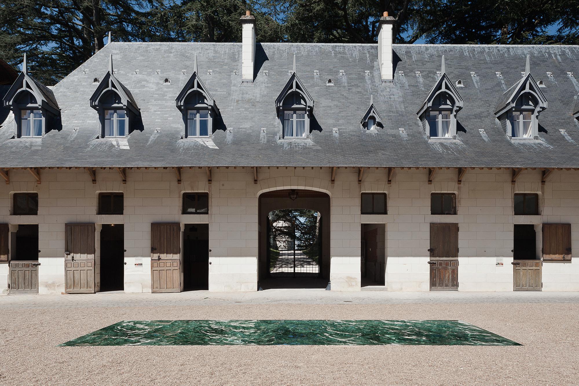Petite Loire is a freeze-frame, the river's perpetual movement caught in a frozen, fossilized moment. A few dozen meters above the river's natural level, Petite Loire cuts cleanly through the garden's surface, delving into the soil to reveal a fluvial relief, both vertiginous and practicable, in green marble ..." M.L