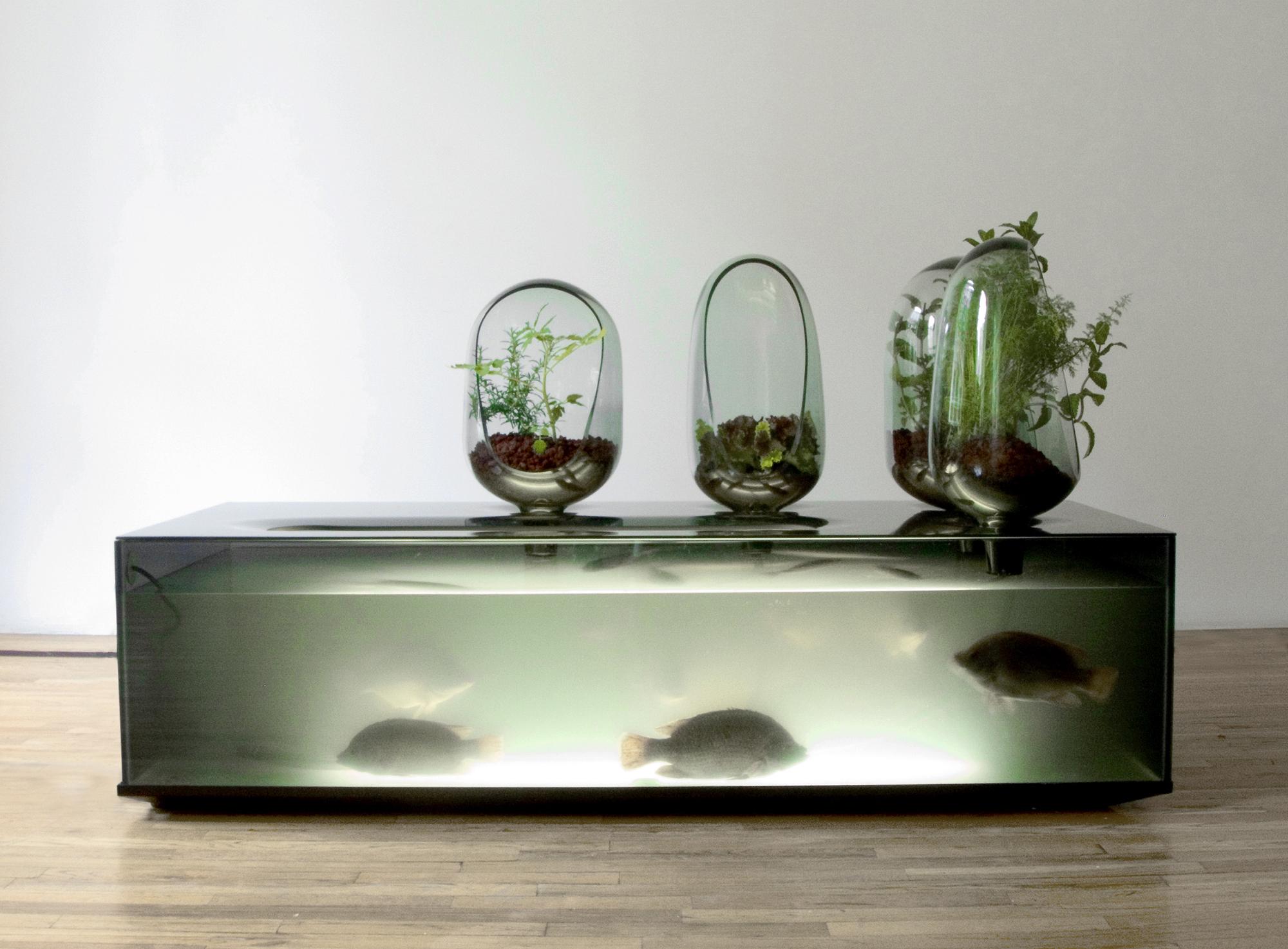 Local River anticipates the growing influence of this group (the word 'locavore' made its first appearance in an American dictionary in 2007) by proposing a home storage unit for live freshwater fish combined with a mini vegetable patch. This DIY fish-farm-cum-kitchen-garden is based on the principle of aquaponics coupled with the exchange and interdependence of two living organisms - plants and fish.