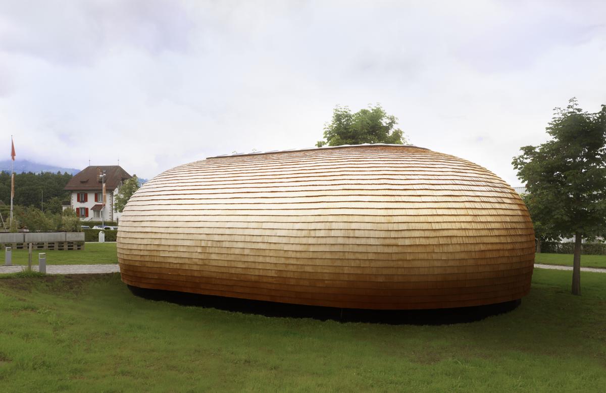 Mathieu Lehanneur has designed the first flagship store for the mythical Swiss chocolate maker MAISON CAILLER (Nestlé). Situated in Broc, in the middle of the Swiss mountains at the very place where the internationally renowned chocolate is produced, this small building (60m2) will welcome visitors to the manufacturer with a tasting destined to make your individual 'chocolate personnalities' or that of your loved ones to offer formulas best suited to your taste. Mathieu Lehanneur draws upon the local tradition of 'tavillon,' the wooden Swiss tiles, that he appropriates to design an armadillo structure, the small animal covered with scales capable of rolling itself into a ball in the blink of an eye. A building which has buttoned down the hatches, a protective yurt placed on its native soil for a motionless journey to the land of taste.