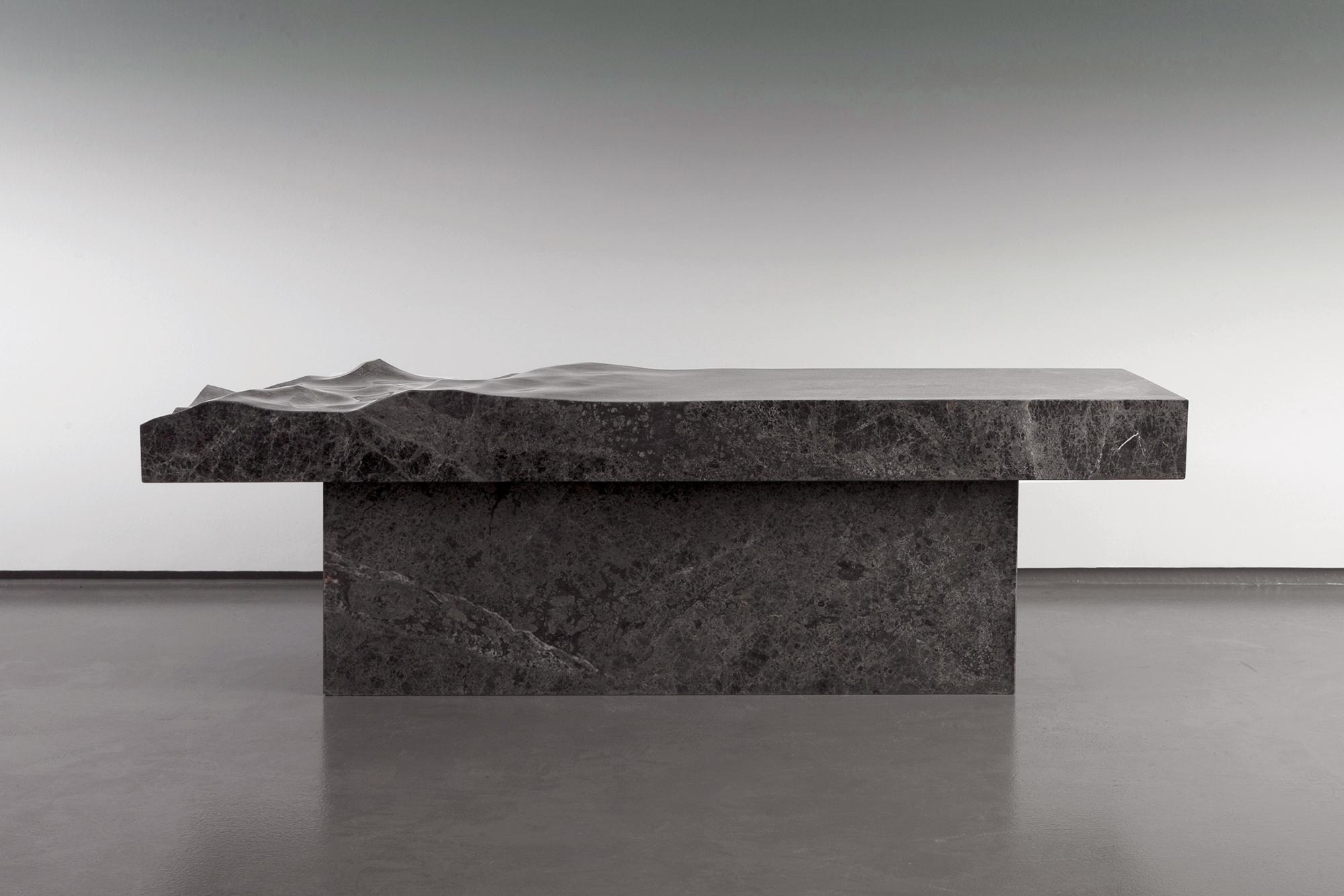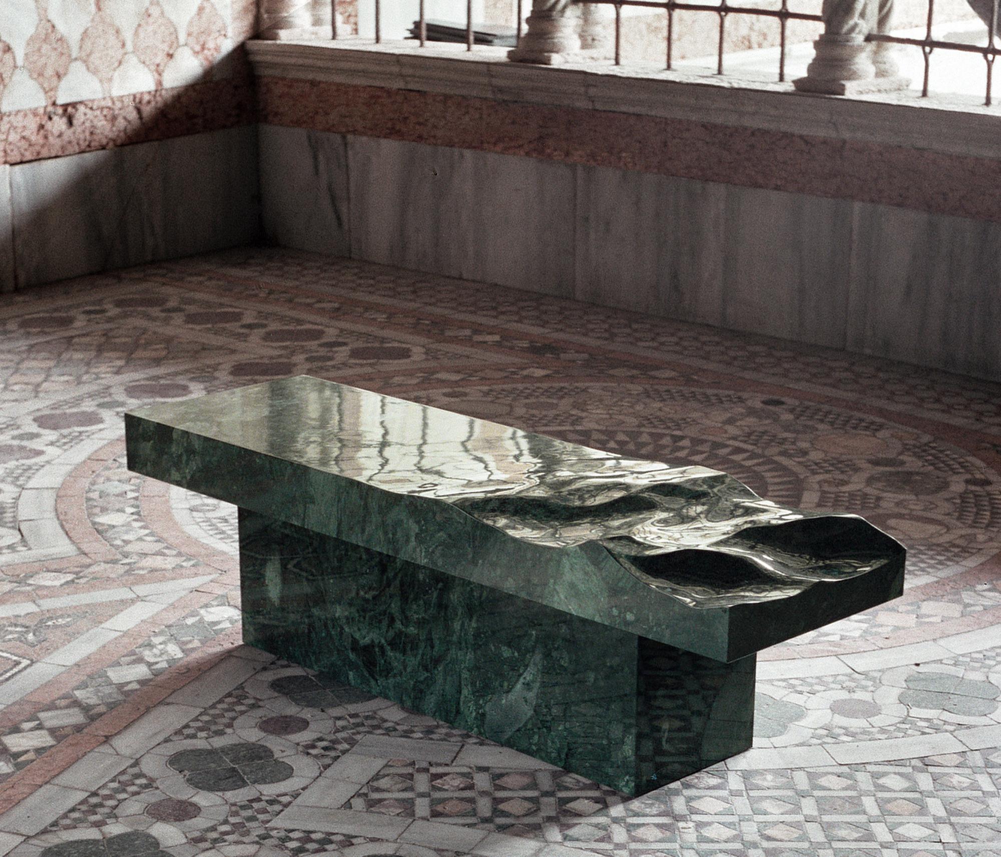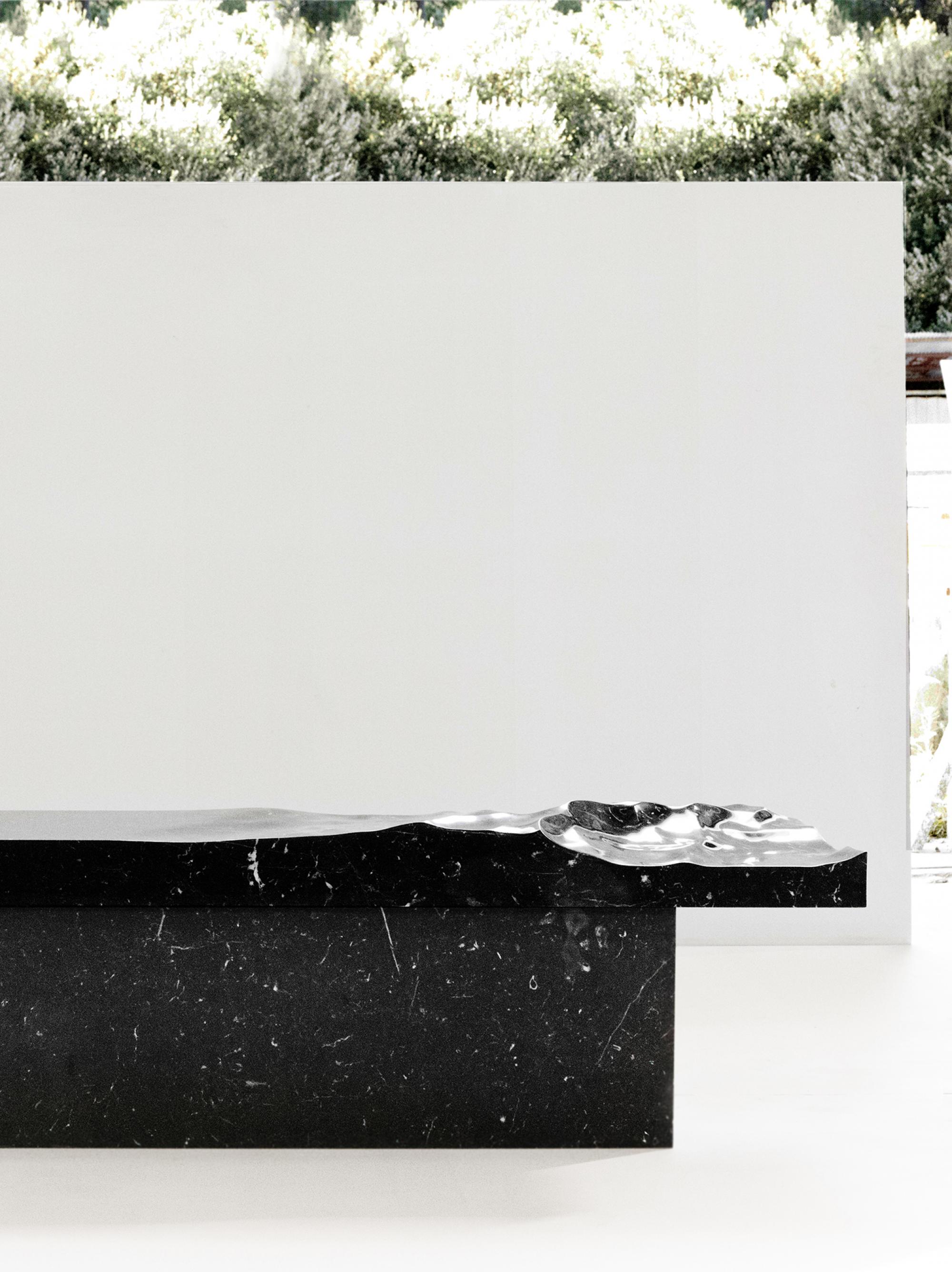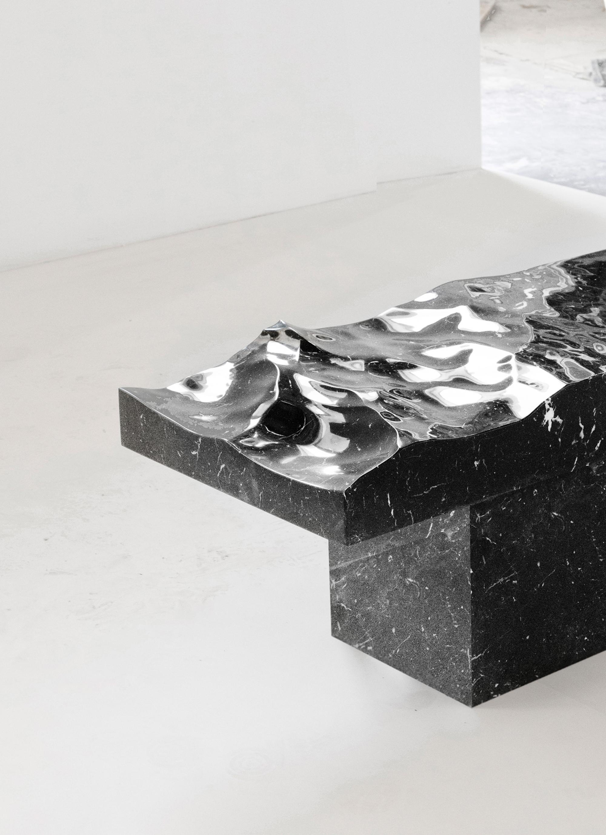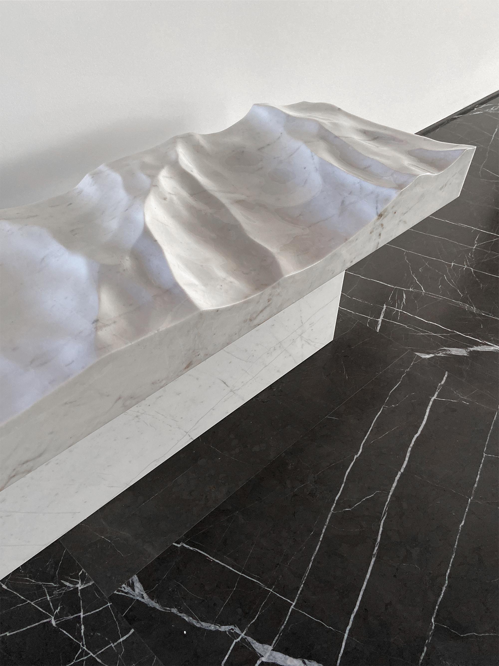 "Ocean Memories offers a surrealist and materialized vision of a sea frozen in its movement. Like a freeze-frame in three dimensions, the pieces capture the subtle reliefs of waves and currents.The transition from solid to liquid is a magic of physics. A moment of change from static to movement, a passage from the inert to the living" ML