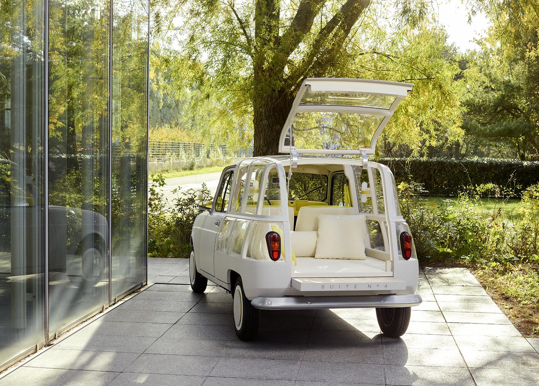 To celebrate the 60th anniversary of the 4L, Mathieu Lehanneur was invited by French historic mobility brand Renault, a pioneer of electric vehicles in Europe, to reinvent it. Leave. To discover. To escape.Never before has the desire of elsewhere been so strong. Never before has the need for escape been so necessary. It is from this idea that Mathieu Lehanneur and Renault joined forces to invent a new travel experience. Designed from the legendary car 4L that celebrates its 60th anniversary this year Mathieu Lehanneur imagined a vehicle like a nomadic hotel suite, fully open to the outside and whose horizons can be continually renewed.100% electric, SUITE N°4 is an ode to escape, a bubble in its minimal luxury that is inspired both by the architecture and the environments in which it passes. As a room on four wheels, cozy and bathed in light, it combines a new art of living, in the city or in the countryside.