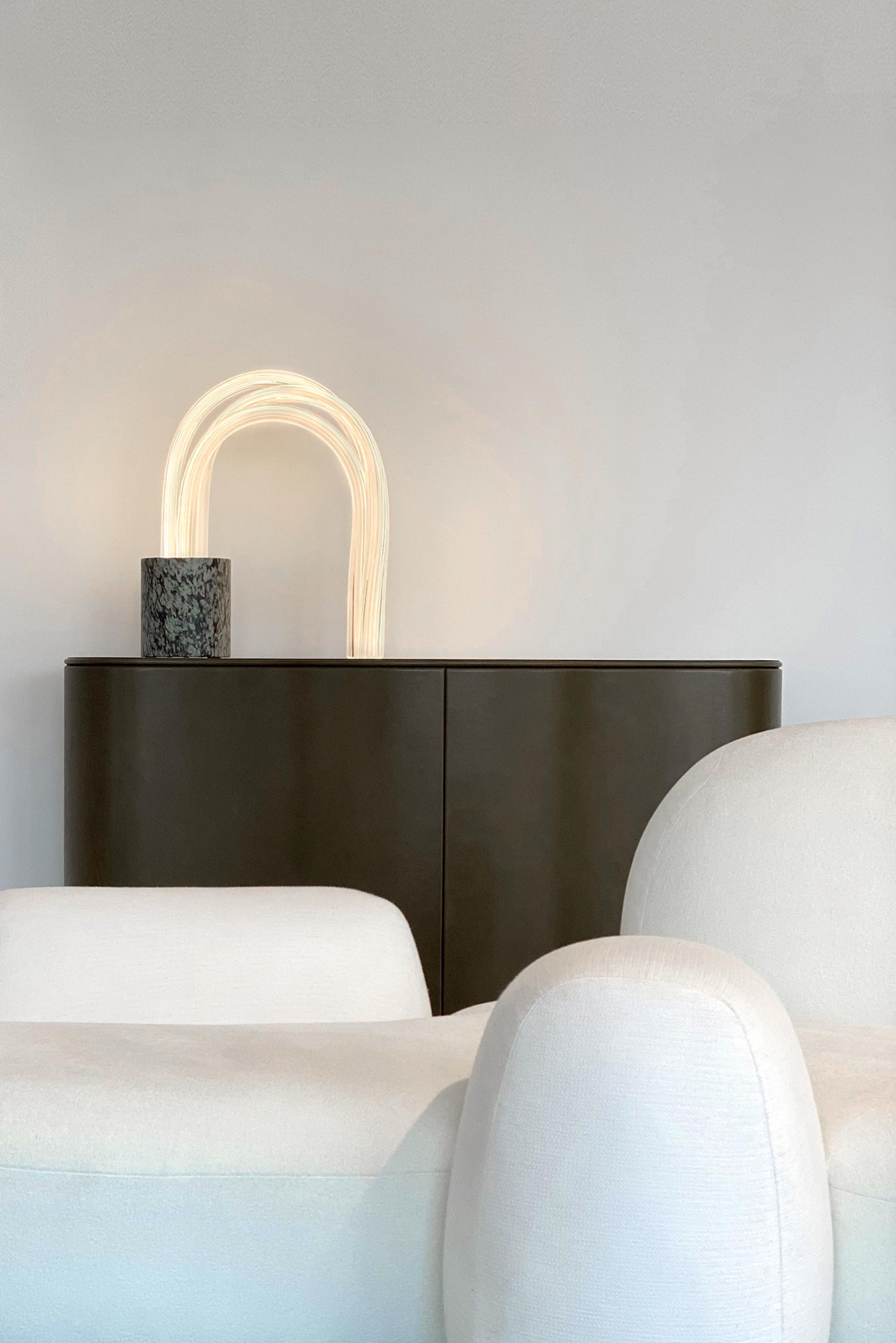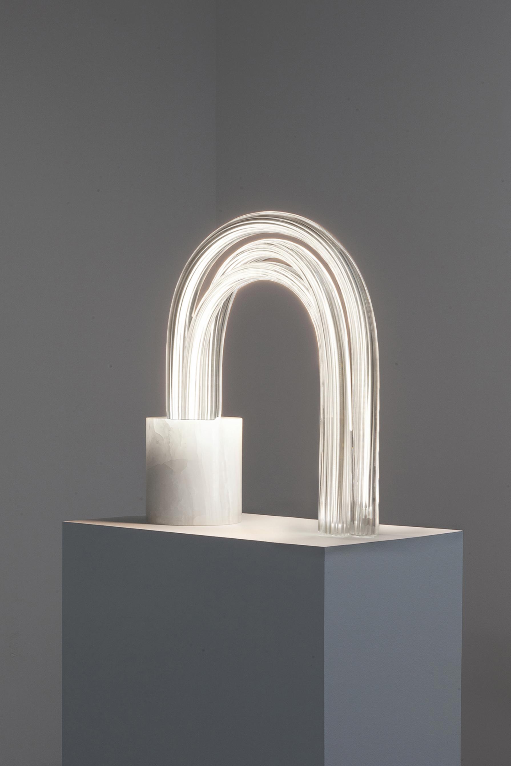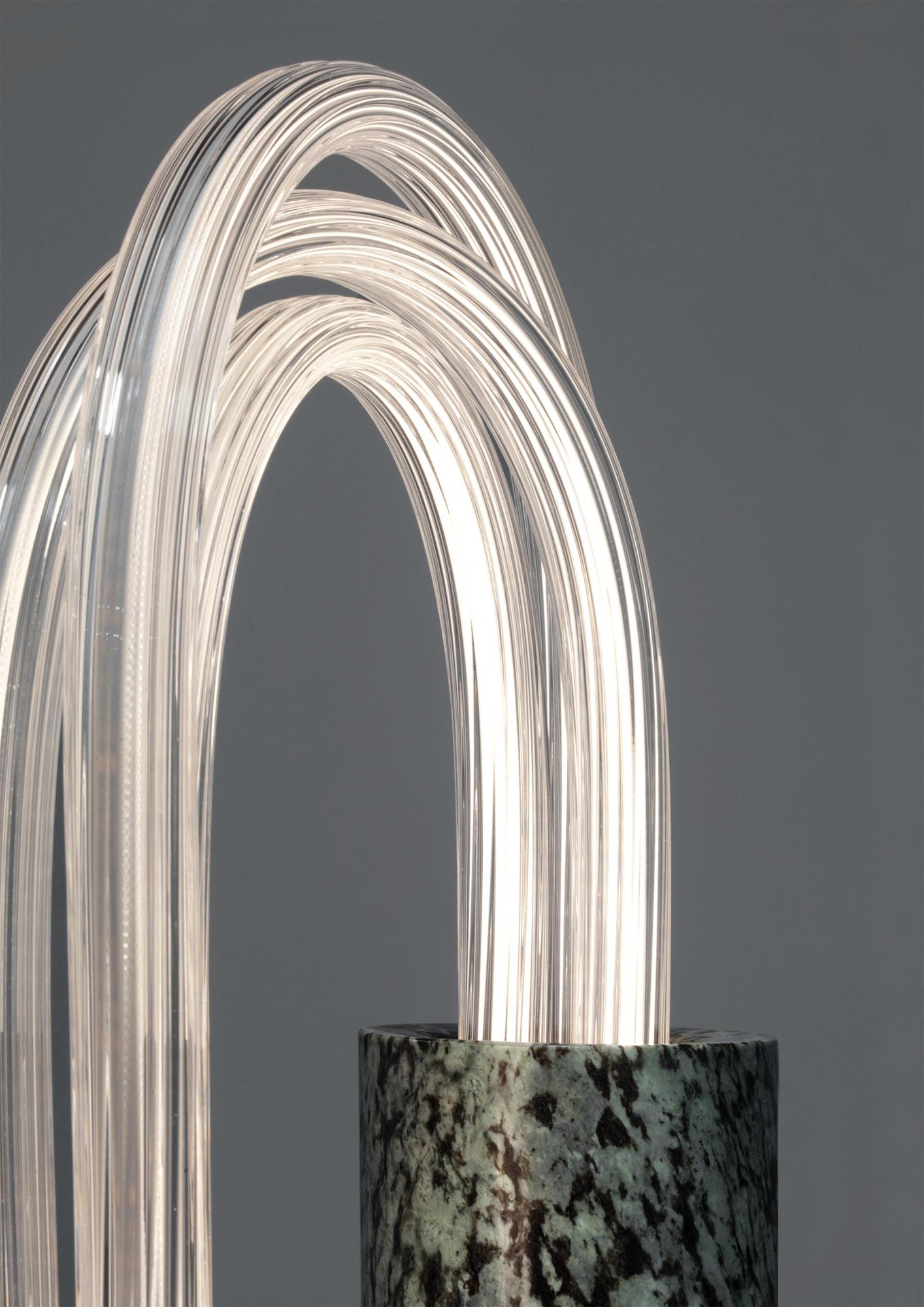 ''There is always a kind of disappointment when the material becomes fossilized in its natural state. The bright and bubbling lava crystallizes into black pebbles, the incandescent glass paste neutralizes and cools off... I tried to revive the matter and make it walk the opposite way. Towards a return to life'' ML