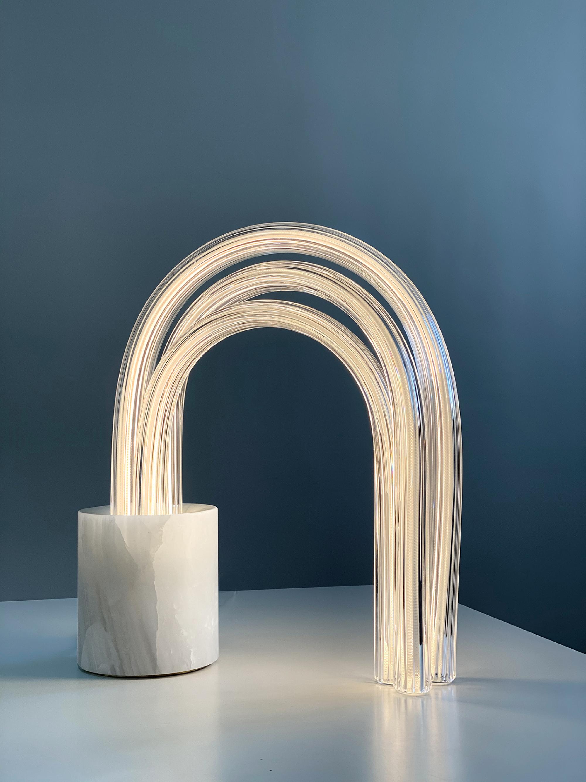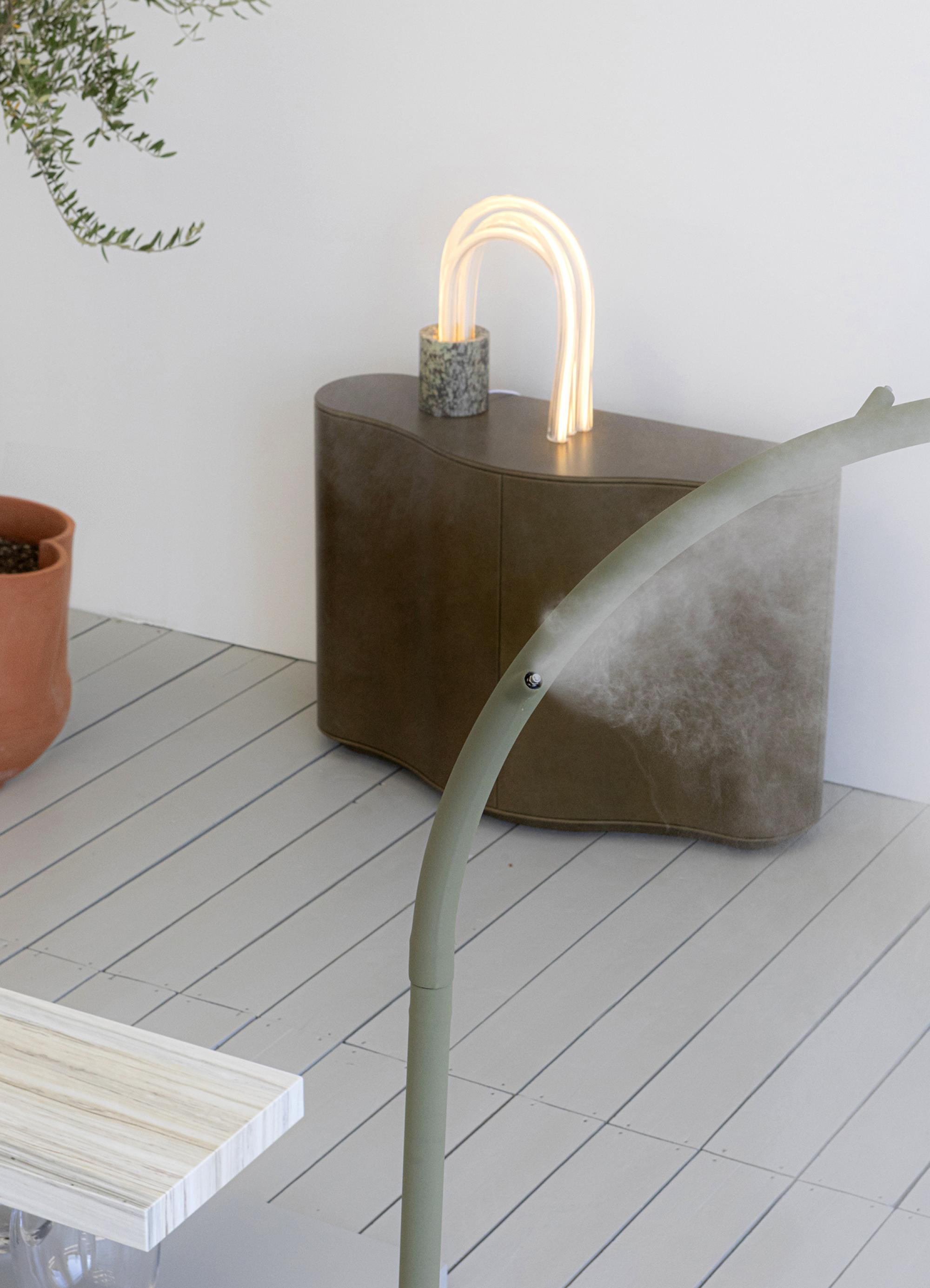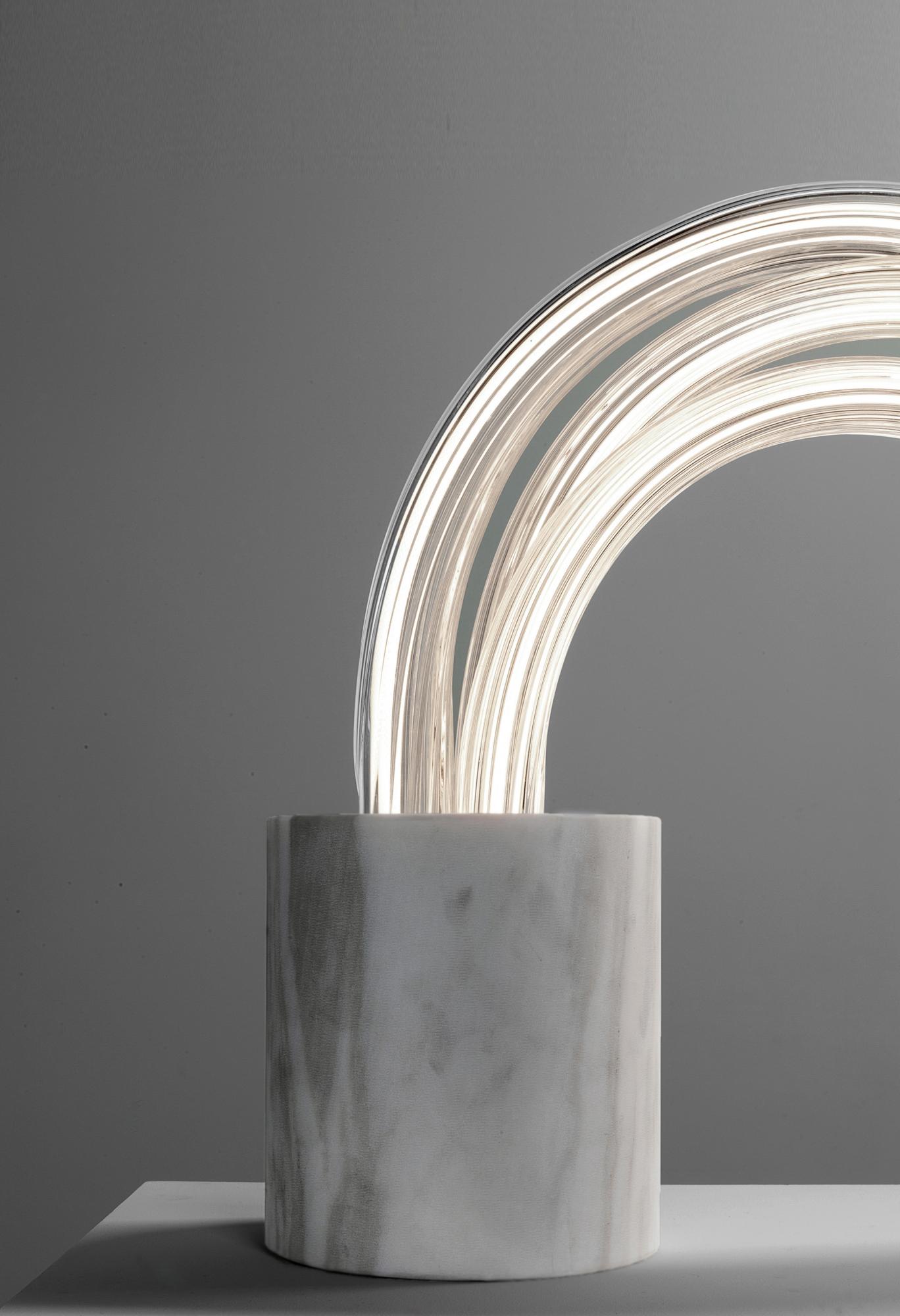 ''There is always a kind of disappointment when the material becomes fossilized in its natural state. The bright and bubbling lava crystallizes into black pebbles, the incandescent glass paste neutralizes and cools off... I tried to revive the matter and make it walk the opposite way. Towards a return to life'' ML