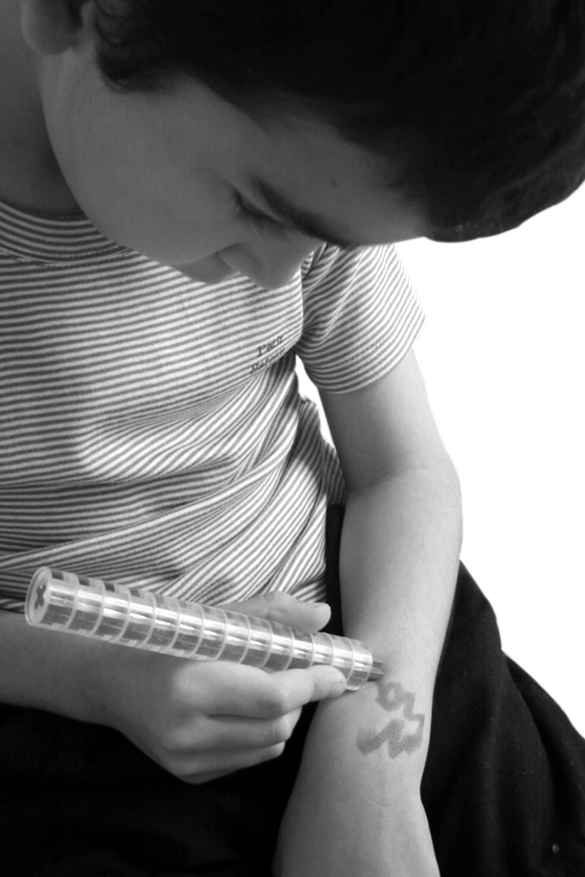 This analgesic for chronic pain is a systemic medication, which acts on all symptoms together. All that is required is to write on the painful area of the body each day and to remove the used cartridge at the end of each day. This transdermal product is coupled with a user-friendly ink that disappears after several minutes.